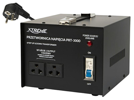 Specyfikacja: Wejście: AC 230V / AC 110V Wyjście: AC 110V / AC 230V Moc: 100W Włącznik: ON/OFF Suwak zmiany napięcia wejściowego: AC 110V - AC 230V Ilość wyjść: 1 x 110V, 1 x 230V Wymiary: 250 x 150 x 185 mm